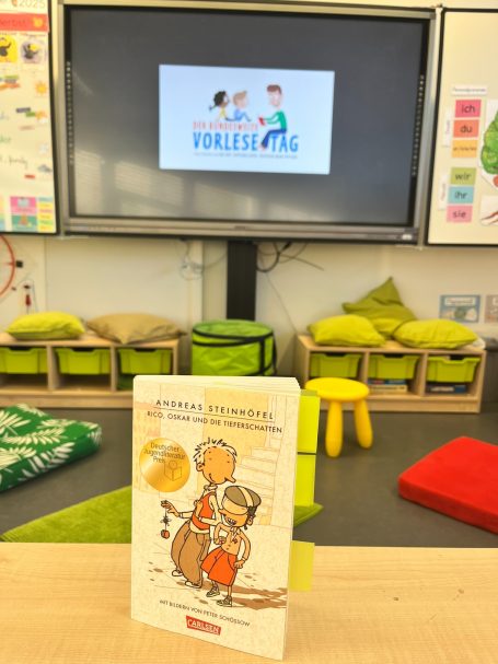 Im November folgten gleich mehrere Höhepunkte: Für die Klassen 1 bis 3 gastierte das Zebra-Theater, das auf anschauliche und kindgerechte Weise wichtige Inhalte der Verkehrserziehung vermittelte. Zudem absolvierten die Kinder der Jahrgangsstufen 1 und 2 den Pflasterpass und lernten grundlegende Maßnahmen der Ersten Hilfe. Am 21.11. nahm unsere Schule wieder am „Bundesweiten Vorlesetag“ teil. Die Lehrkräfte lasen mit viel Engagement vor und sorgten für eine gemütliche Atmosphäre, in der die Freude am Lesen deutlich spürbar war.