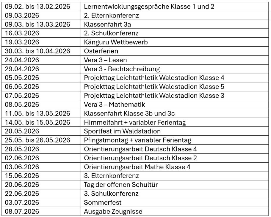 Termine und Veranstaltungen 2. Schulhalbjahr 2025/2026